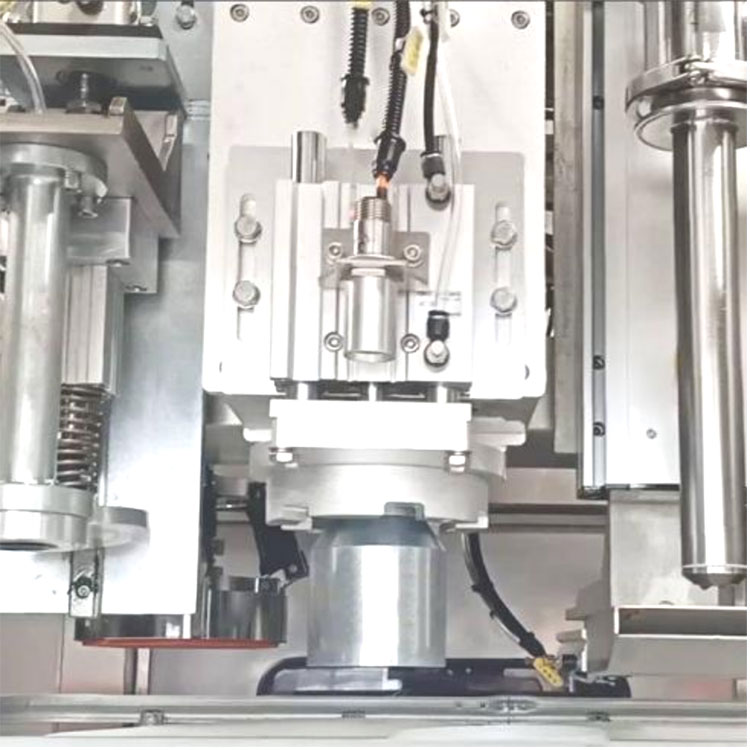 ဖြည့်သွင်းသည့်ပမာဏကို ထိန်းချုပ်ရန်အတွက် အလေးချိန်ချိန်ခြင်း၏လုပ်ငန်းဆောင်တာနိယာမကို အသုံးပြုသည်။ အဖြည့်အဆို့ရှင်ဖွင့်ချိန်ကို ပရိုဂရမ်မီနိုင်သော ထိန်းချုပ်ကိရိယာ PLC မှ ထိန်းချုပ်ထားပြီး ပစ္စည်းများသည် ကွန်တိန်နာထဲသို့ (သို့မဟုတ် ပန့်ကျွေးခြင်းမှတဆင့်) သယ်ဆောင်သွားပါသည်။ ဤစက်၏အဖြည့်ဌာနသည် အထူနှင့်ပါးလွှာသော ပိုက်လိုင်းနှစ်ခုမှတစ်ဆင့် အမြန်ဖြည့်သွင်းခြင်းနှင့် နှေးကွေးခြင်းများကို သိရှိနားလည်ပြီး နှေးကွေးသော ဖြည့်သွင်းစီးဆင်းမှုကို ချိန်ညှိနိုင်သည်။ ဖြည့်စဥ်ချိန်၌ ပိုက်လိုင်းနှစ်ထပ်ကို တစ်ချိန်တည်းတွင် ဖွင့်လှစ်သည်။ ဖြည့်သွင်းသည့်ကာလပြီးနောက်၊ ရေငုပ်ဆလင်ဒါသည် စည်၏ပါးစပ်အနေအထားသို့ တက်လာသည်၊ ရေနံစိမ်းပိုက်လိုင်းကို ပိတ်လိုက်ပြီး၊ ပါးလွှာသောပိုက်လိုင်းသည် သတ်မှတ်ထားသော အလုံးစုံဖြည့်ပမာဏအထိ ဖြည်းညှင်းစွာ ဆက်လက်ဖြည့်ပါသည်။ ဖြည့်စွက်မှုအဆုံးတွင် အလိုအလျောက်လှည့်ပတ်အဖုံးကို လုပ်ဆောင်သည်။